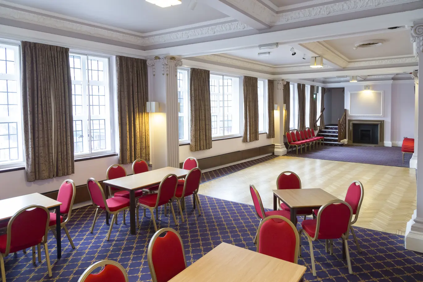 The Ballroom measures 16.7m long x 14.8m wide.